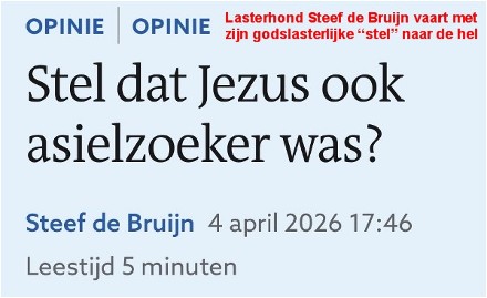 BLASFEMISCHE LASTERHOND STEEF DE BRUIJN PLAATST IN ZIJN HELLEVERONDERSTELLING JEZUS ONDER DE VERKRACHTENDE ASIELZOEKERS